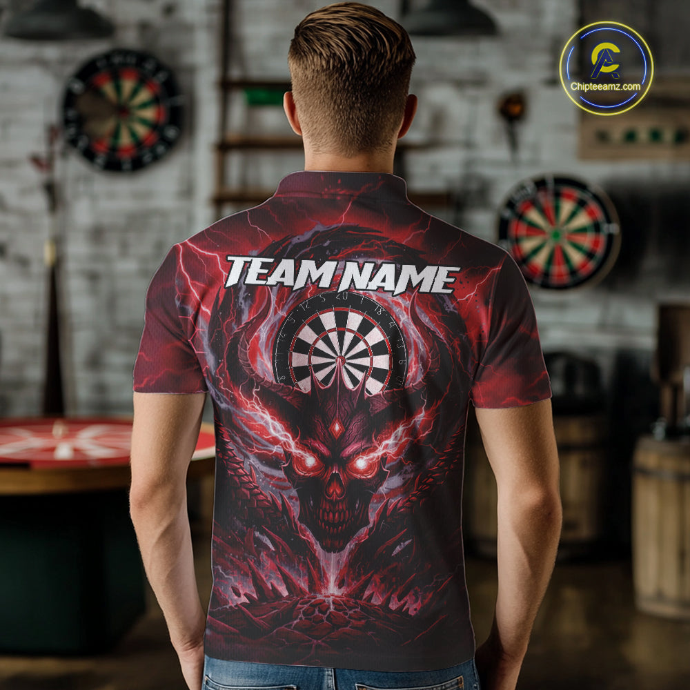 Lightning Red & Grey Dragon Skull Dartboard Custom Men Darts Polo Shirt, Dart Jerseys NYN1807