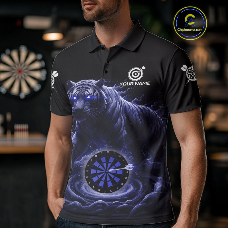 Custom Blue Smokes Funny Tiger Dartboard Men Darts Polo Shirt, Outfits Dart Jerseys NYN1811