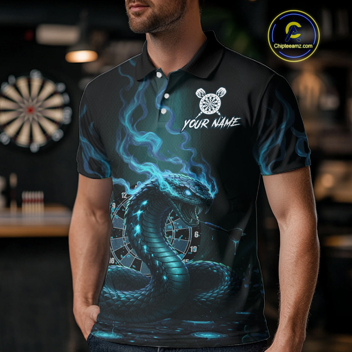 Custom Turquoise Smokes Funny Cobra Dartboard Men Darts Polo Shirt, Outfits Dart Jerseys NYN1815
