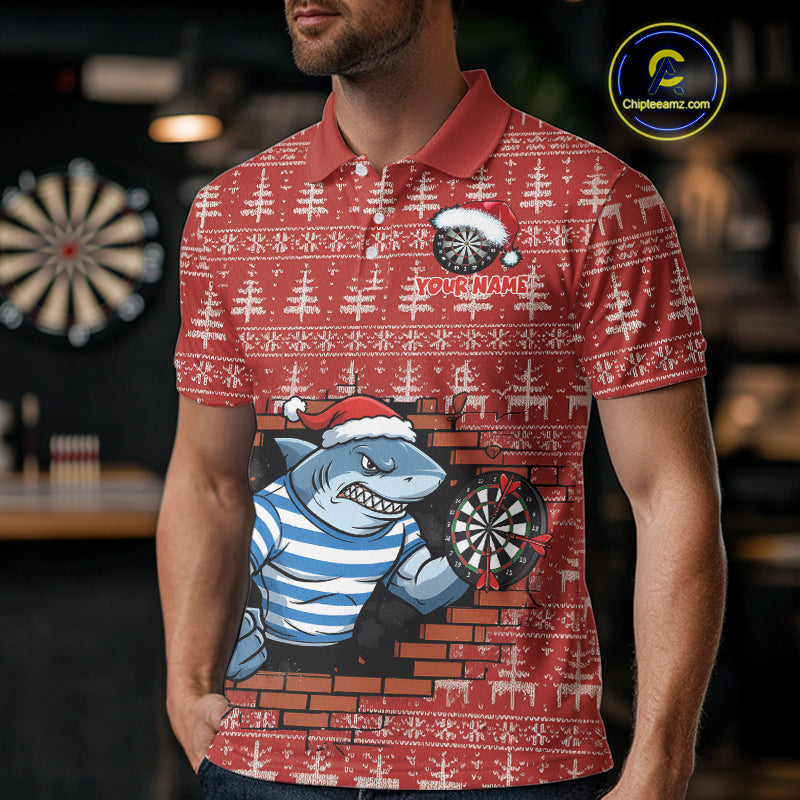 Funny Shark Dartboard Christmas Men Darts Polo Shirt Custom Xmas Dart Jerseys NYN1851