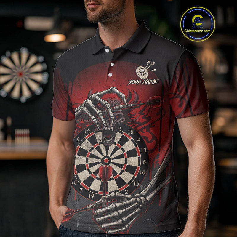 Custom Devil Skeleton Red Dripping Dartboard Men Darts Polo Shirt Outfits Dart Jerseys NYN1855