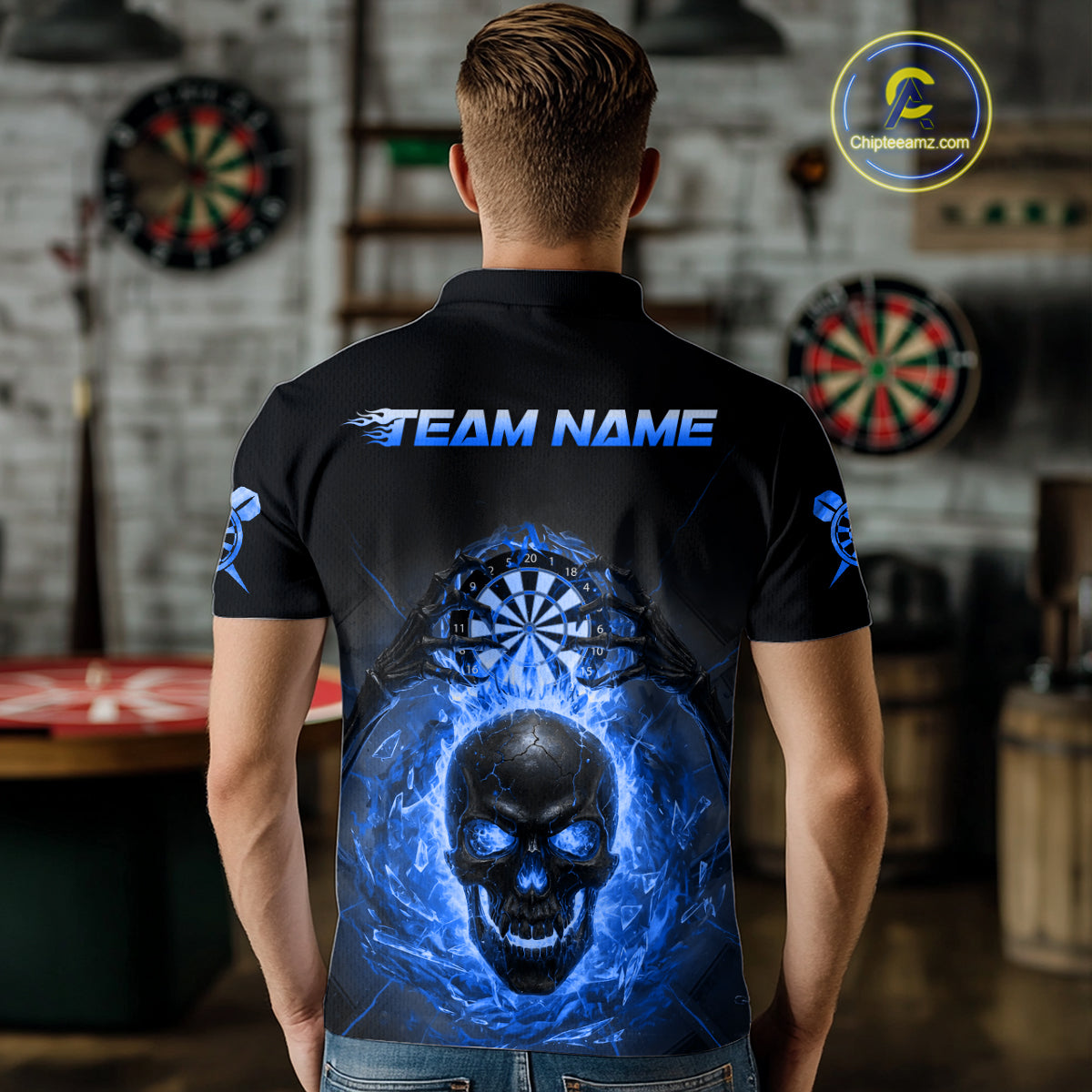 Custom Blue Flames Skull Broken Glass Men Darts Polo Shirt Outfits Dart Jerseys NYN1903