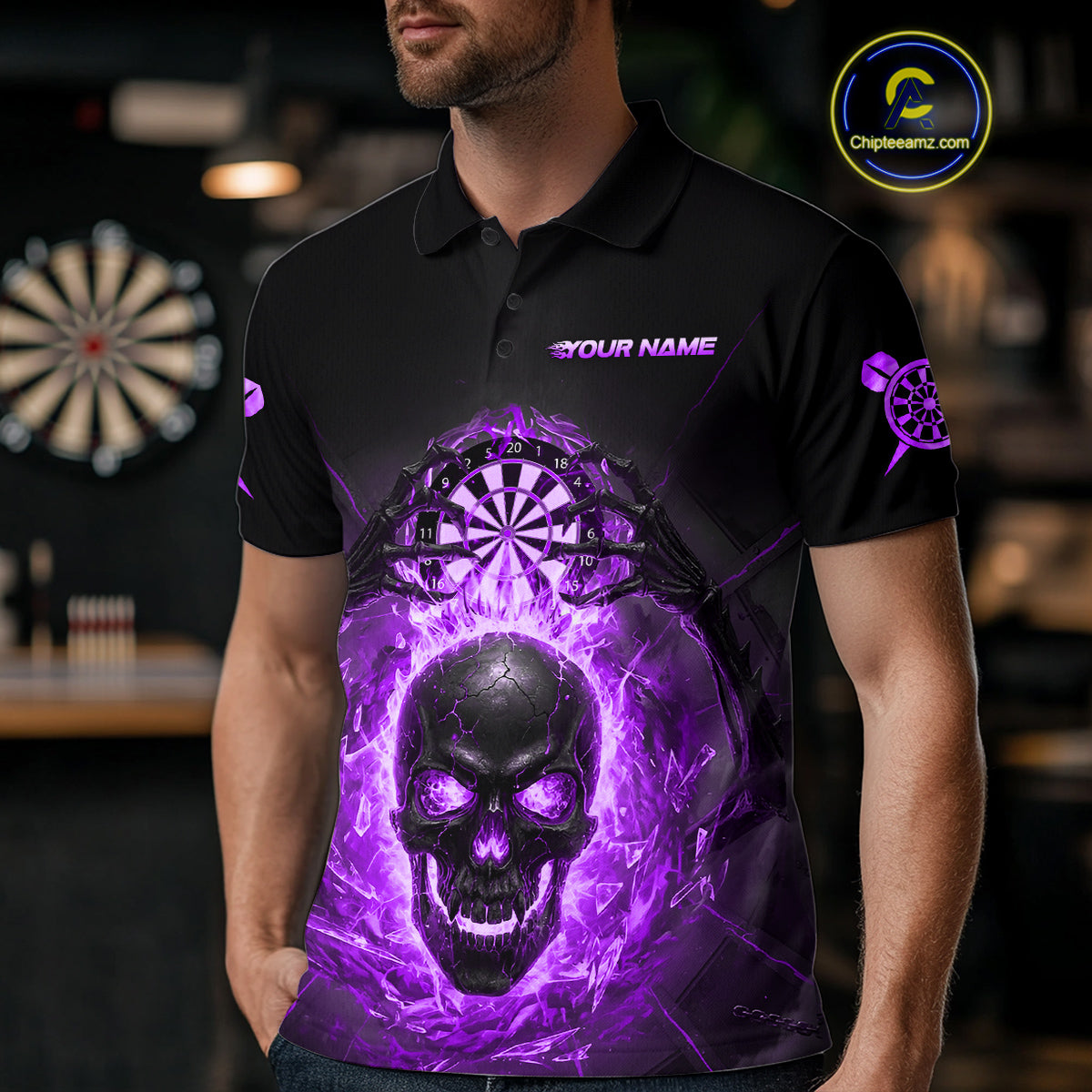 Custom Purple Flames Skull Broken Glass Men Darts Polo Shirt Outfits Dart Jerseys NYN1904