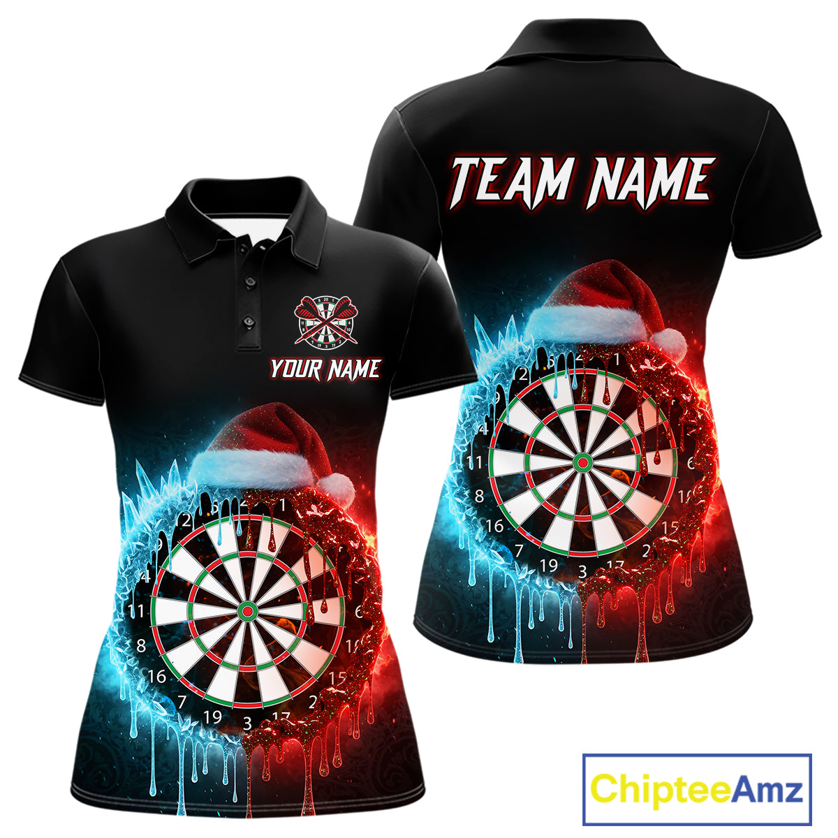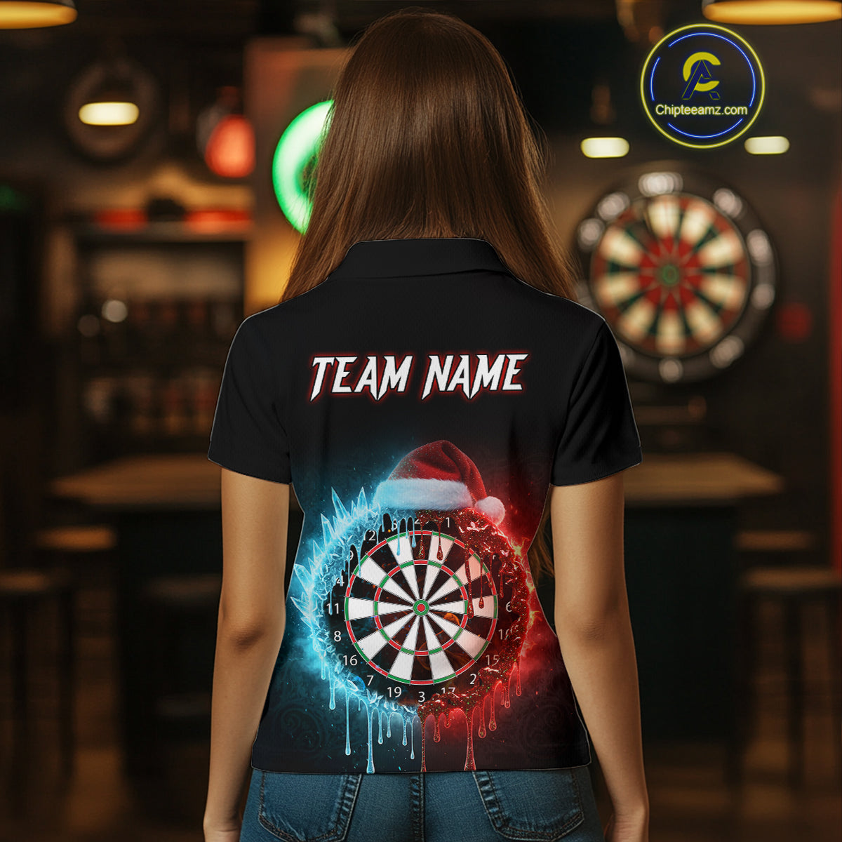 Custom Red Santa Hat & Ice Dartboard Women Darts Polo Shirt Outfits Christmas Dart Jerseys NYN1895