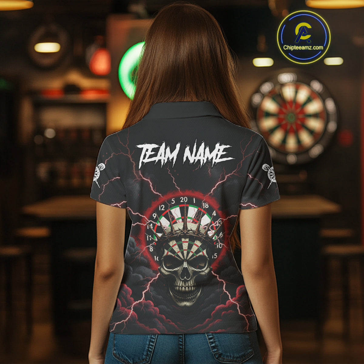 Custom Lightning Red Smokes Skull Dartboard Women Darts Polo Shirt Skull Dart Jerseys NYN1916