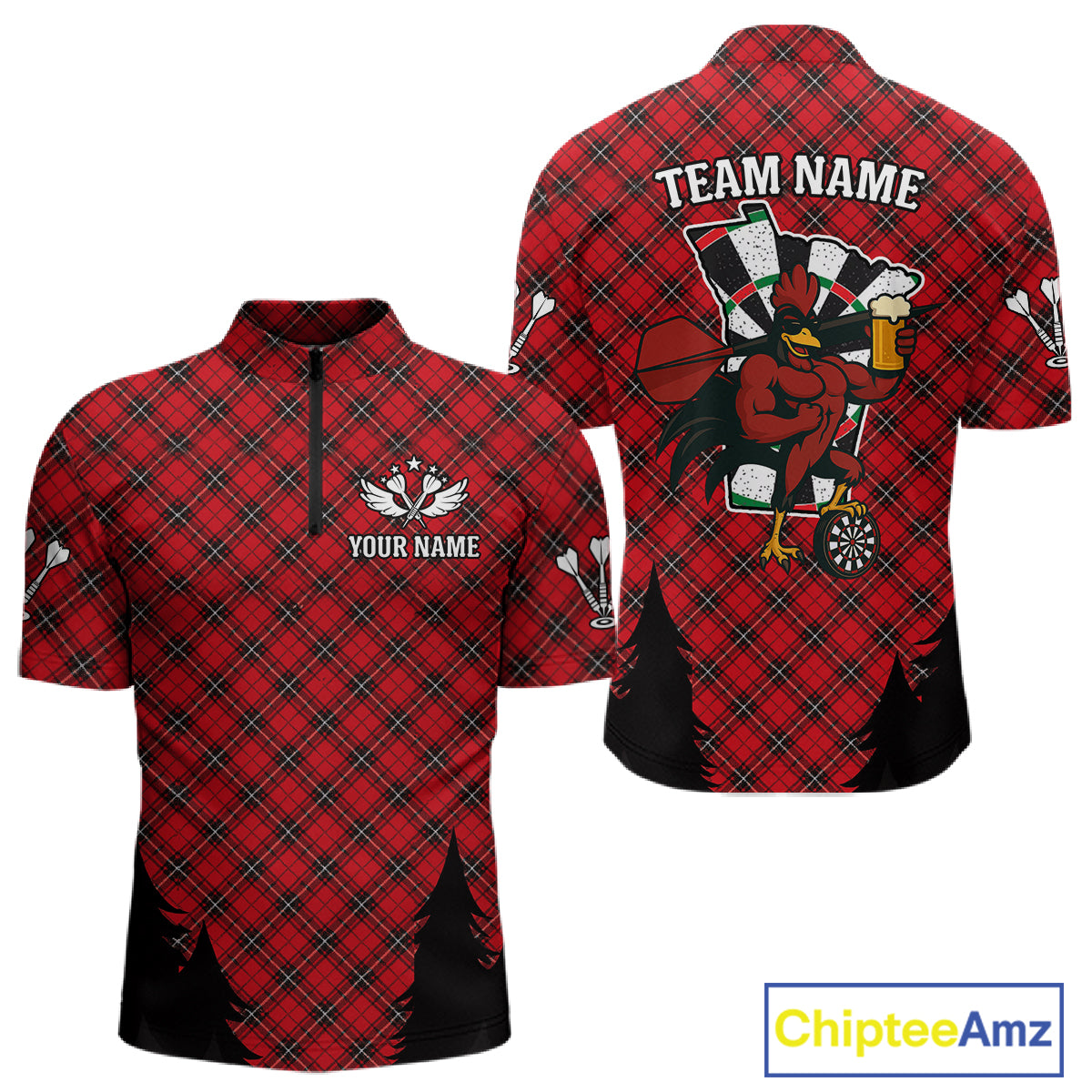Custom Black And Red Rooster Funny Dart 1/4-Zip Shirt For Men Outfits Dart Team Jersey NYN1461
