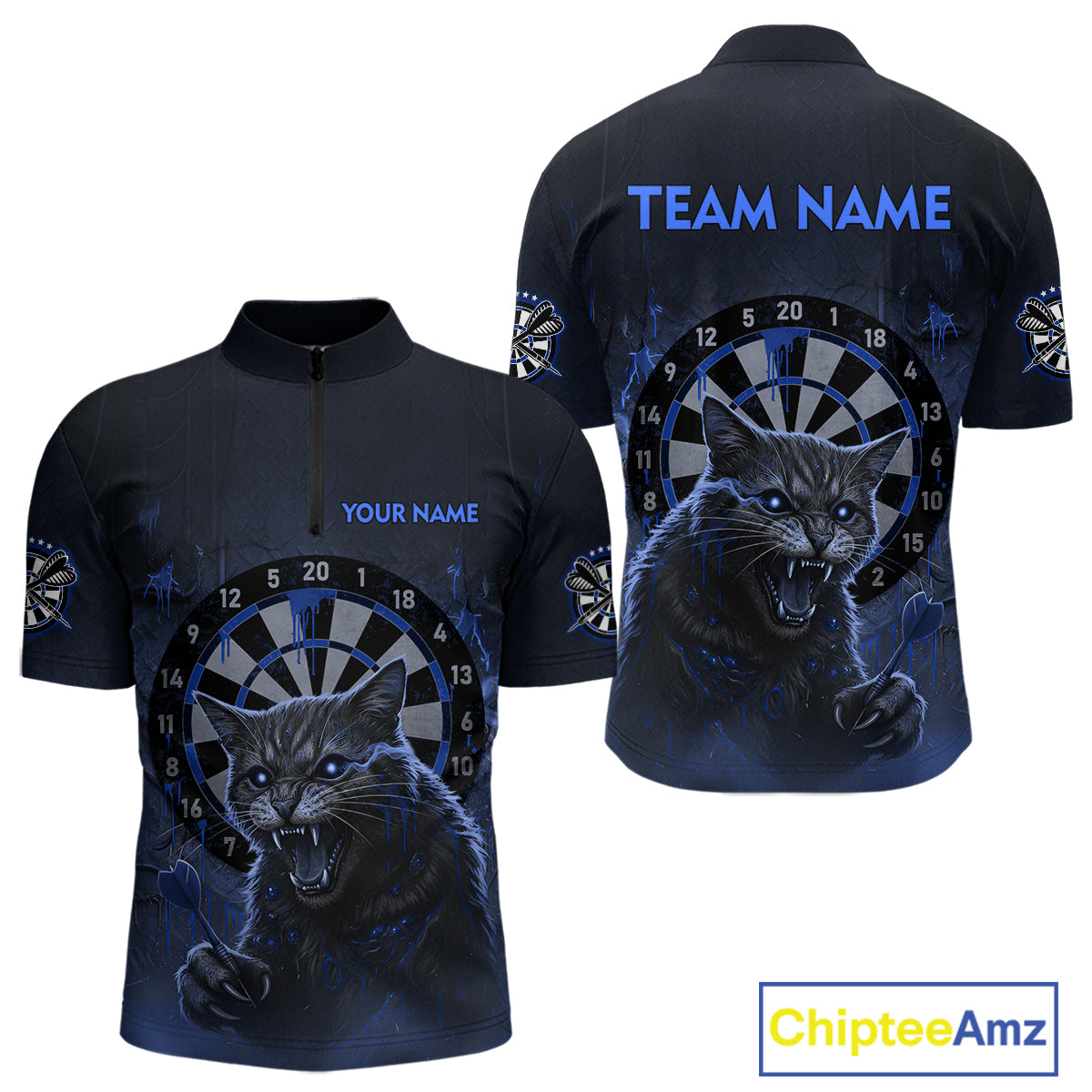 Funny Cat Blue Dripping Dartboard Custom Men's Quarter-Zip Darts Shirt Outfits Darts Jersey NYN1803
