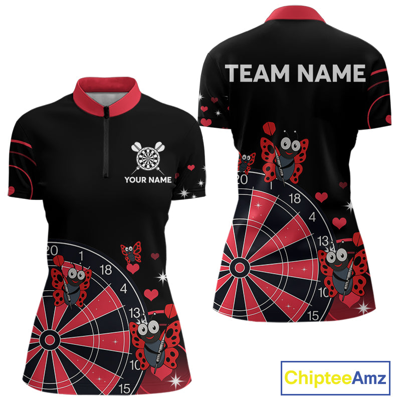 Custom Black And Red Butterflies Funny Dart Women 1/4-Zip Shirt Dart Team Jerseys NYN1561