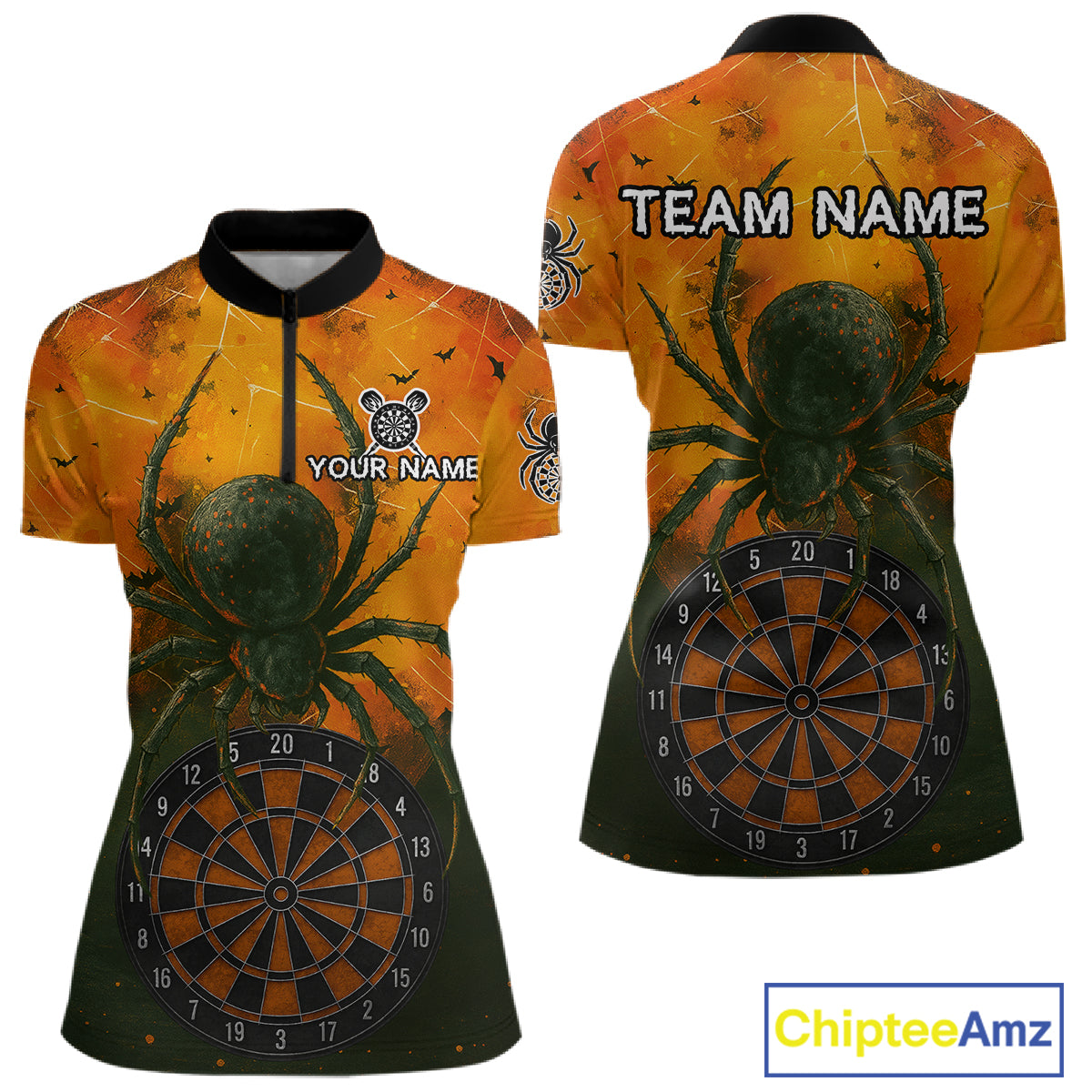Custom Orange Spider Dartboard Halloween Dart Women Polo Shirt Grunge Dart Jerseys NYN1615
