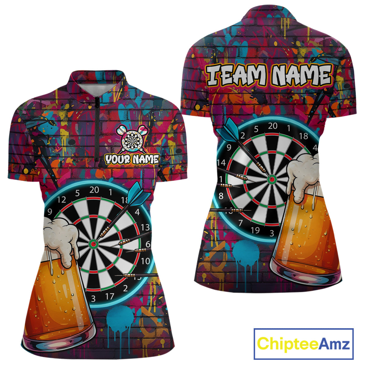Custom Beers & Dartboard Graffiti Funny Darts Quarter-Zip Shirt For Women Colorful Dart Jerseys NYN1864