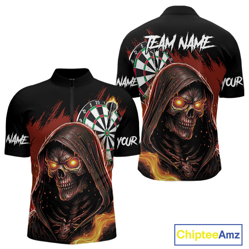 Personalized Red Death Skeleton Fire Dart Shirts For Men Custom Skull Dart Jersey Polo & 1/4 Zip TDM4891