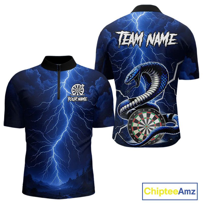 Blue Lightning Thunder Cobra Darts Shirt For Men Custom Darts League Team Jersey Polo & 1/4 Zip TDM4895