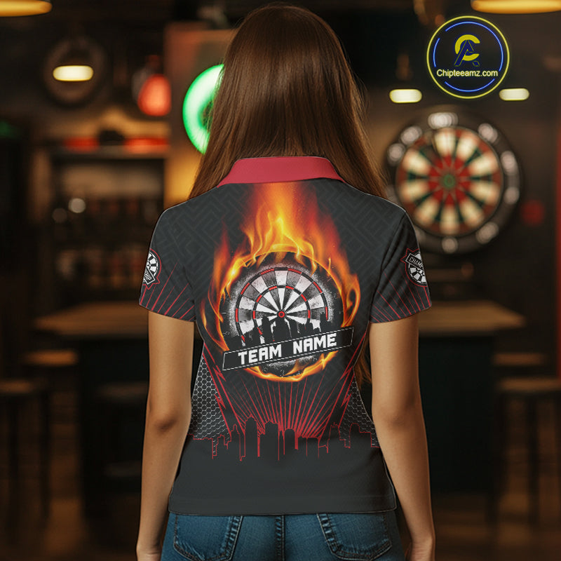 Custom Black And Red Fire Flame Dartboard Dart Shirts For Women, Dart Tournament Jerseys NYN0071