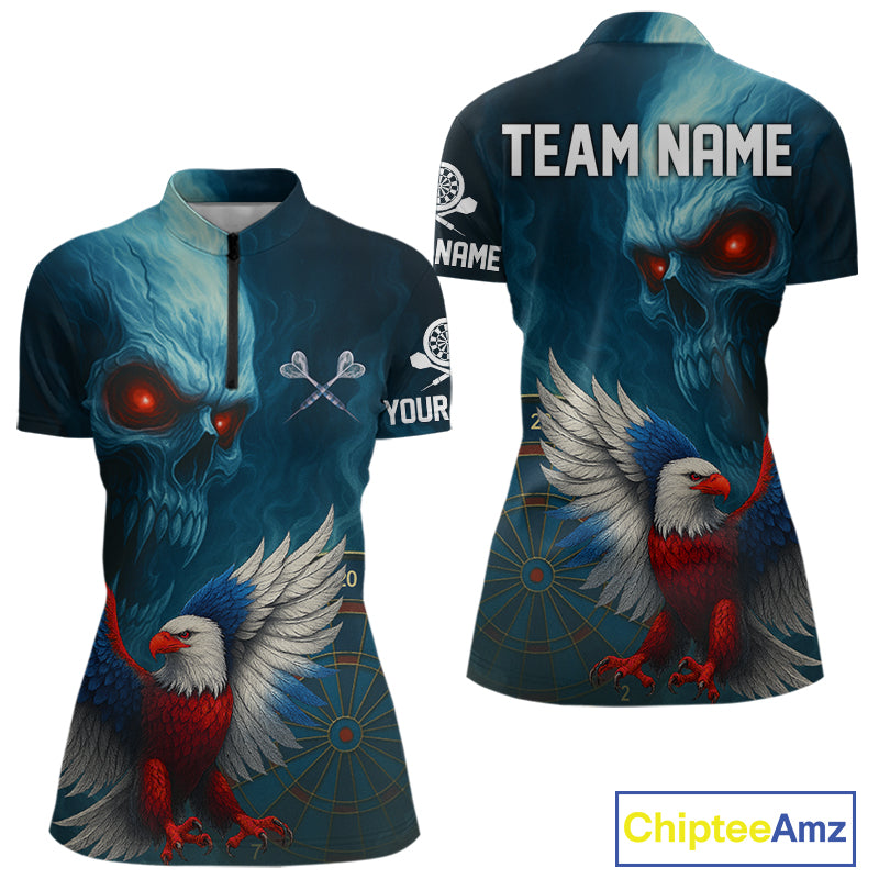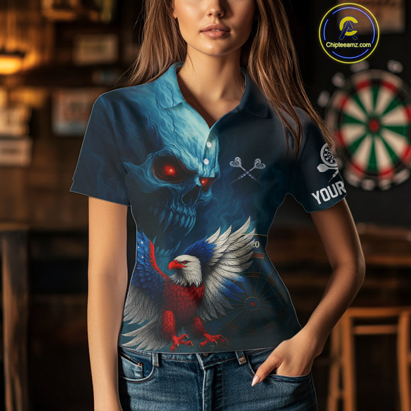 Custom Women Darts Shirt Personalized Smoke Skull Eagle Dartboard Dart Team Jerseys NYN1167