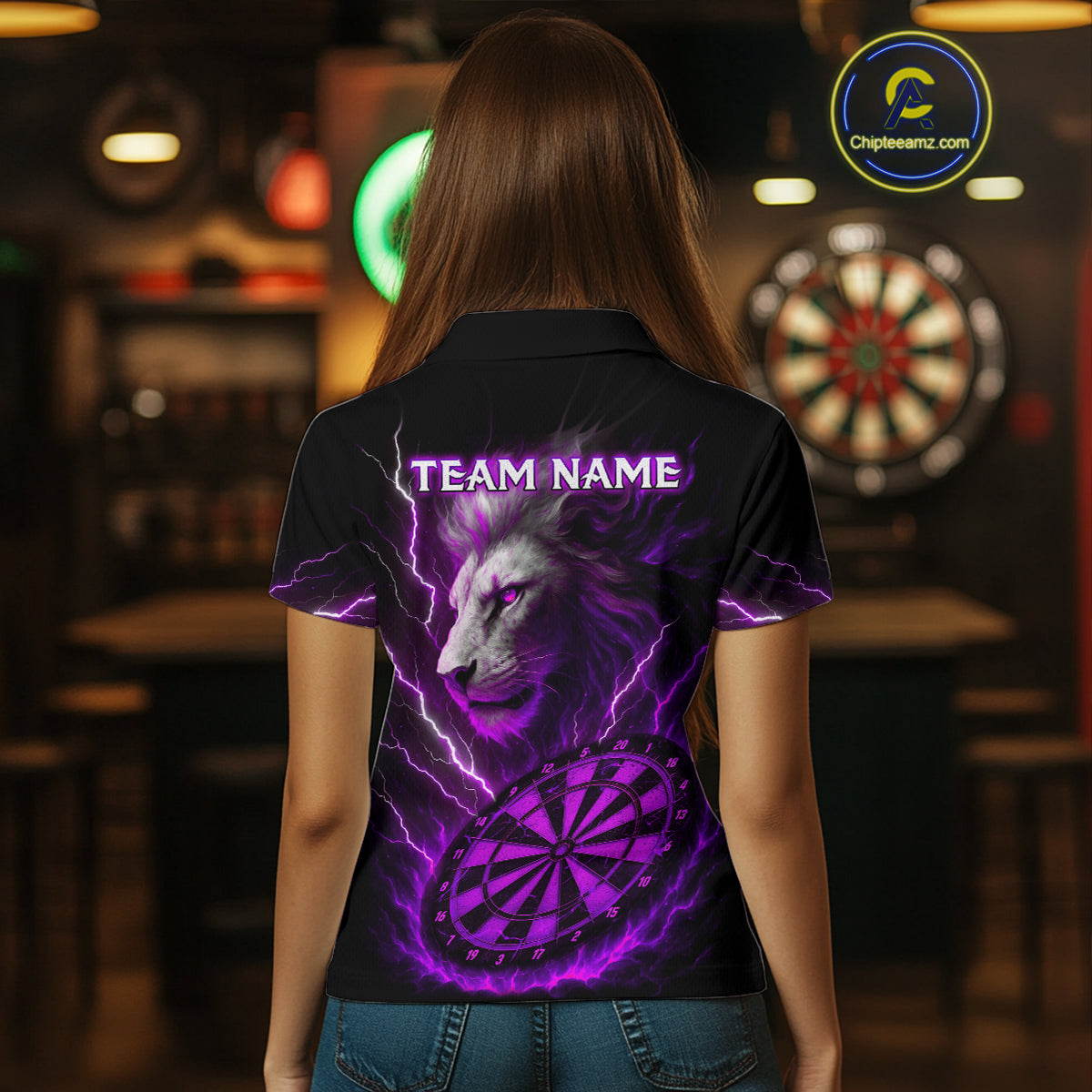 Purple Custom Women Darts Shirt With Lion Personalized Lightning Dartboard Dart Jerseys NYN1220