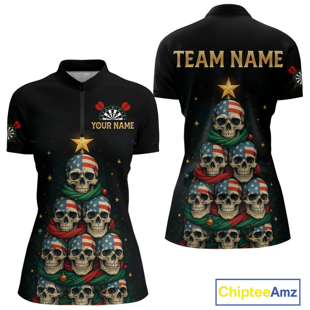 Custom Funny Christmas Darts Shirt For Women Outfits Xmas Holiday Skull Dart Jerseys NYN1279