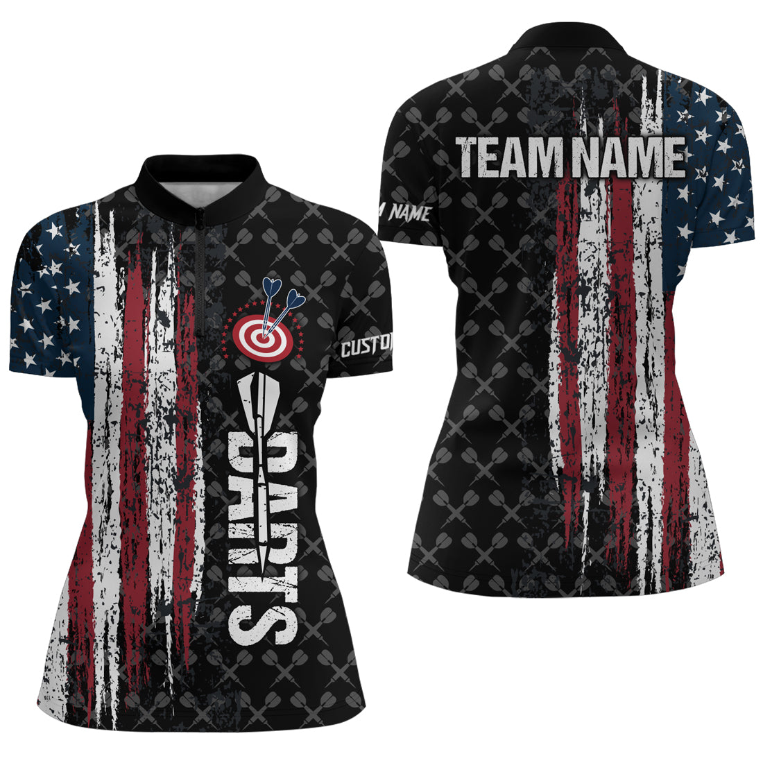 Grunge Vintage American Flag Custom Dart Shirts For Women, Pride Team Patriotic Dart Jerseys TDM3296