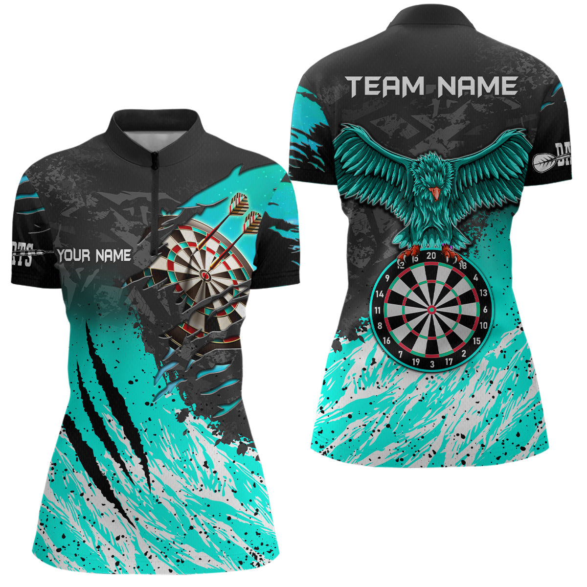 Personalized Turquoise Black Eagle Dartboard Dart Polo & 1/4 Zip For Women Custom Team Dart Jerseys TDM3522