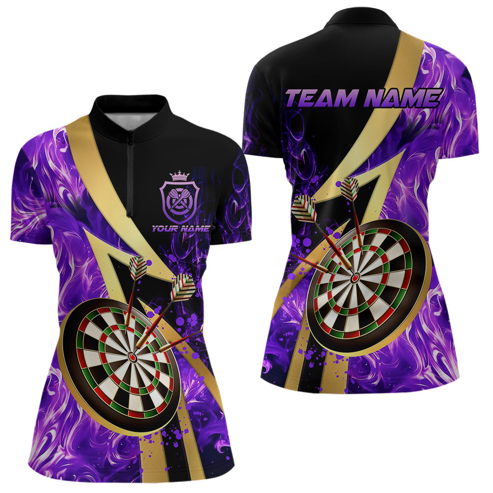 Personalized Purple And Gold Smoke Swirling Women Dart Shirts, Dart Team Shirts Custom Dart Jerseys TDM3784