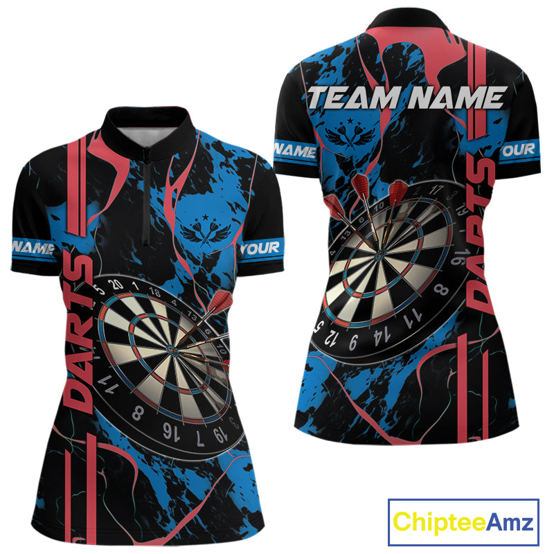 Custom Women's Dart Shirt - Grunge Blue And Red Dartboard Paint Splash Polo & Quarter Zip Jersey TDM3981