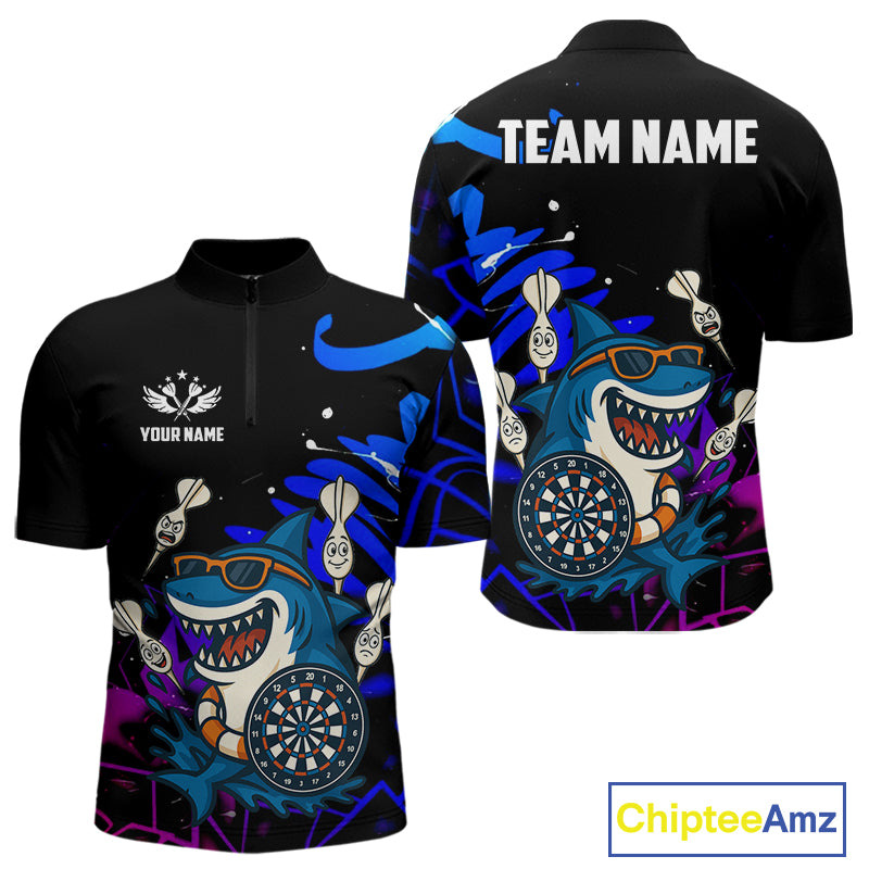 Funny Shark Darts Shirt For Men – Custom Dart Team Jersey | Polo & Quarter Zip Darts Shirt Style TDM4077