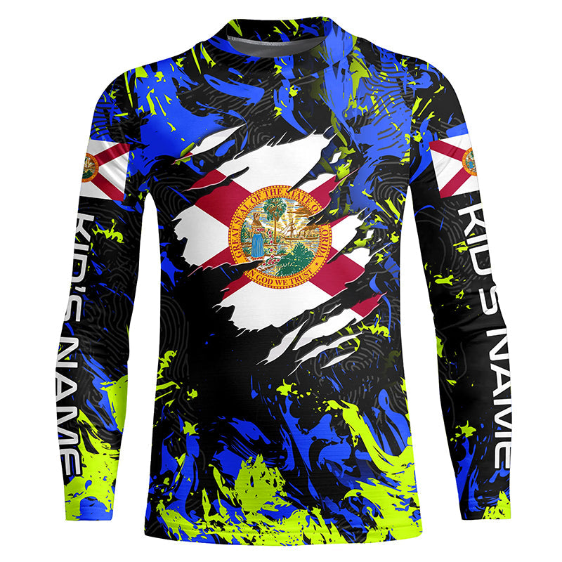 Blue green camo Florida flag patriot shirt Custom sun protection fishing long sleeve shirts NQS7263