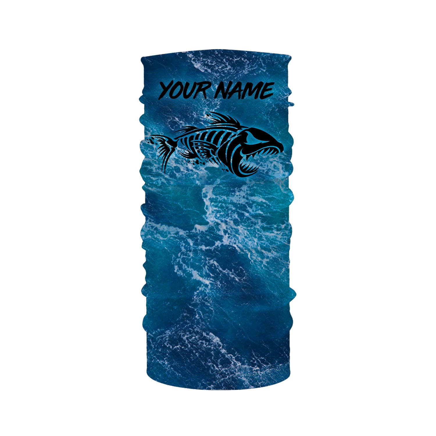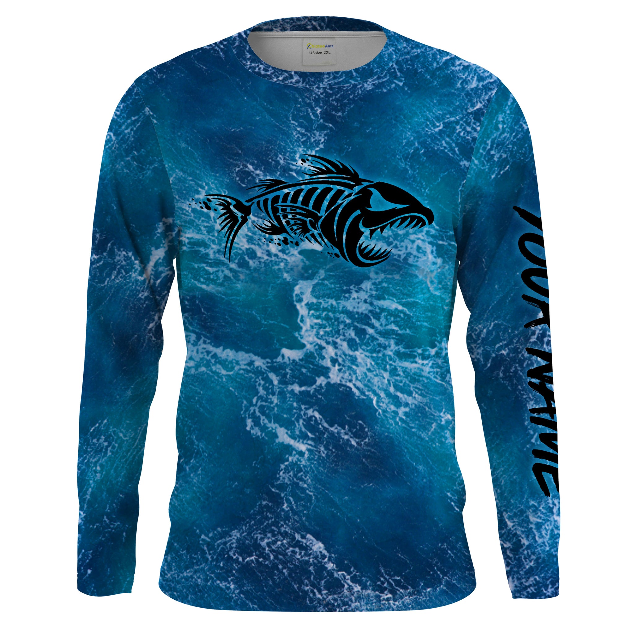 Custom blue ocean fish bone Saltwater Long sleeve Fishing Shirts UV Protection, Sea wave camo Fishing Shirts - NQS2079