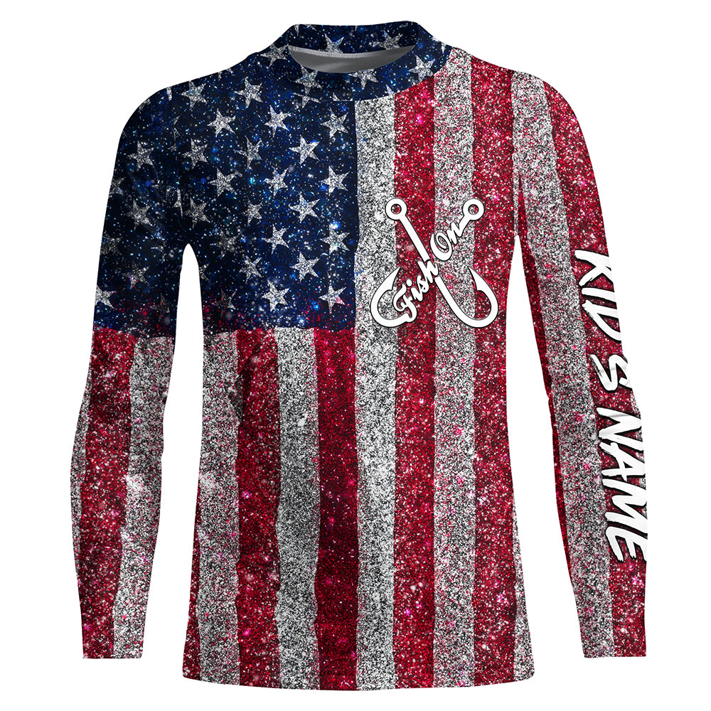 Fish On American Flag UV Protection Custom Long Sleeve Shirts Patriotic Fishing Jersey TTN127