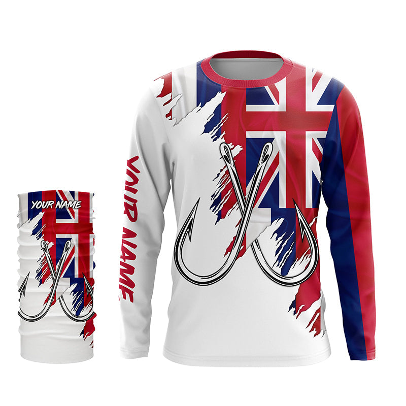 Hawaiian flag HI Fishing Fish Hook UV protection custom long sleeve Patriotic fishing apparel NQS8269