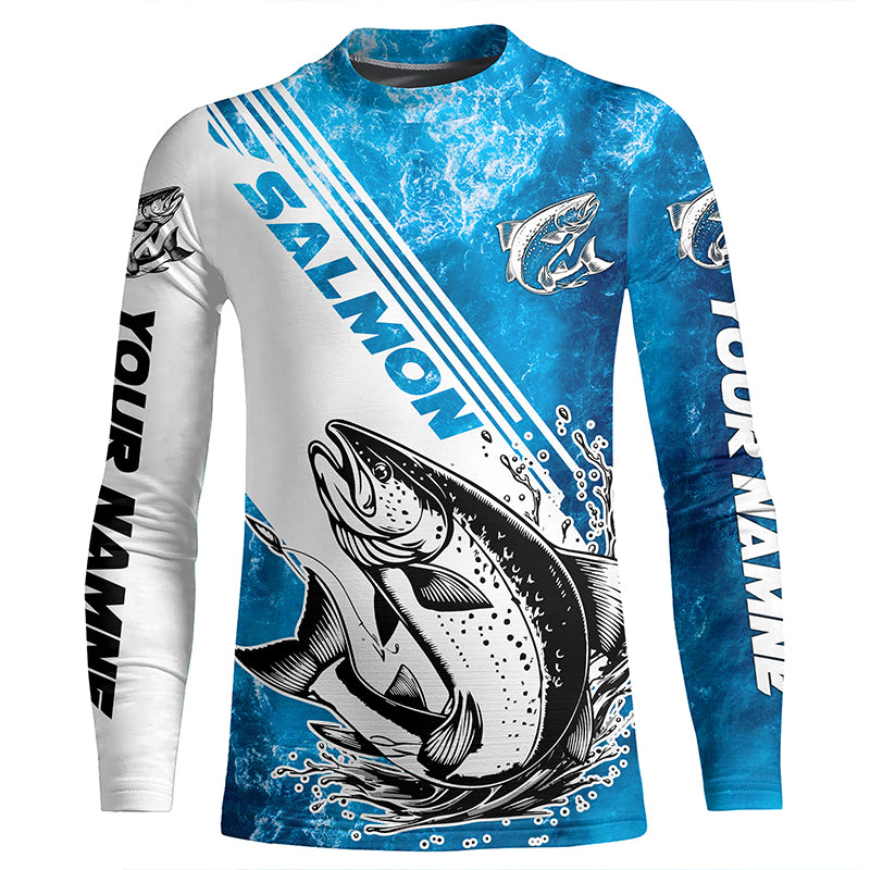 Chinook Salmon Fishing Custom Long Sleeve Performance Shirts, Saltwater Salmon Fishing Shirts IPHW6308