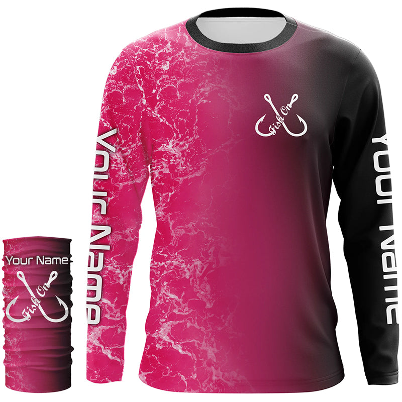 Pink black ocean camo fishing fish on Custom long sleeve performance Fishing jerseys NQS6101