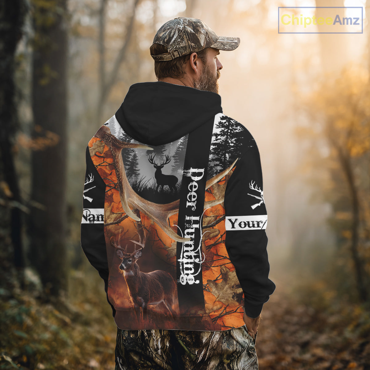 Deer Hunting Camo Custom Name 3D All Over Print Orange Black Best Hunting Clothes For Season NHT256
