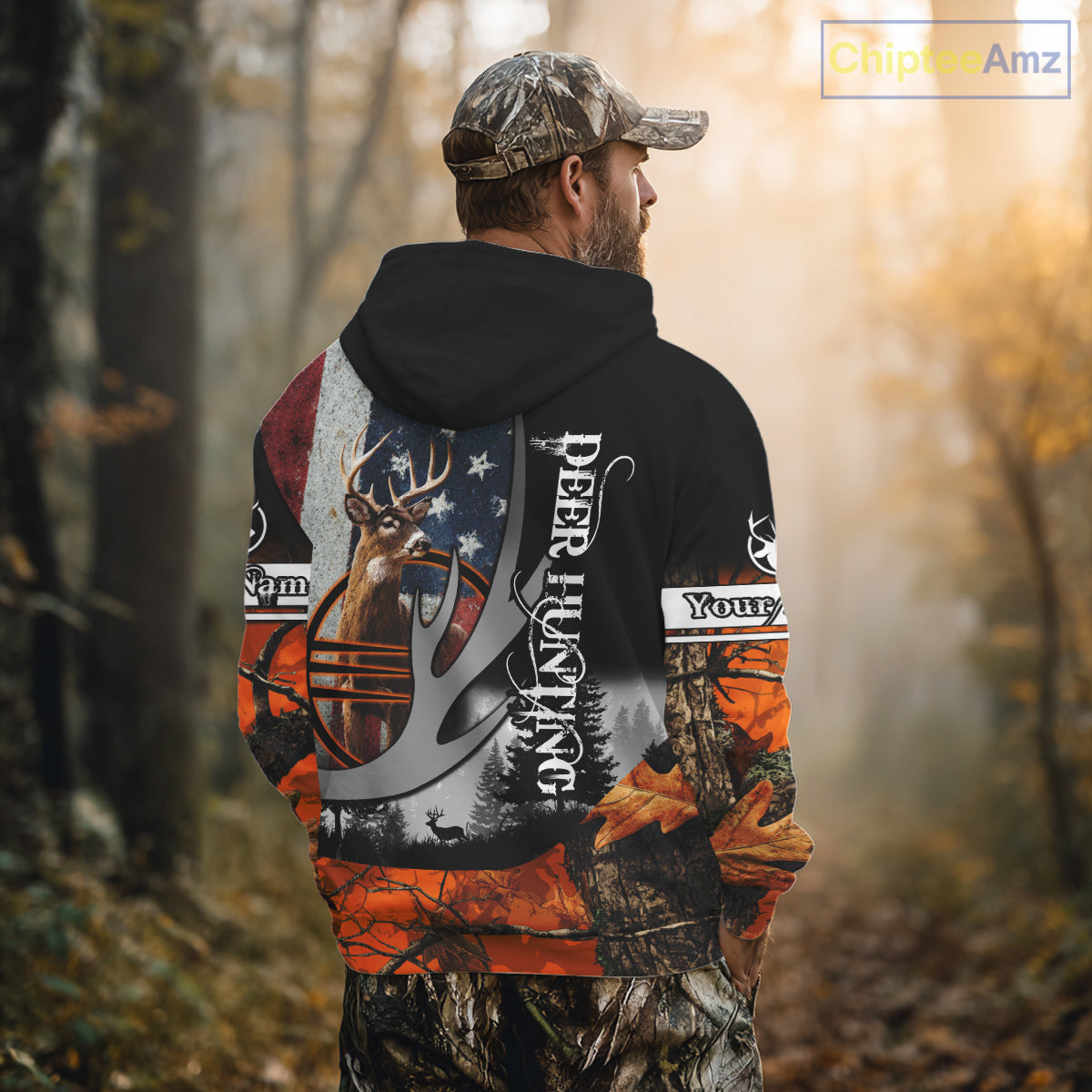 Whitetail Deer Hunting Shirt Custom Name Orange Camo, Deer Hunting Clothes For Men NBT268