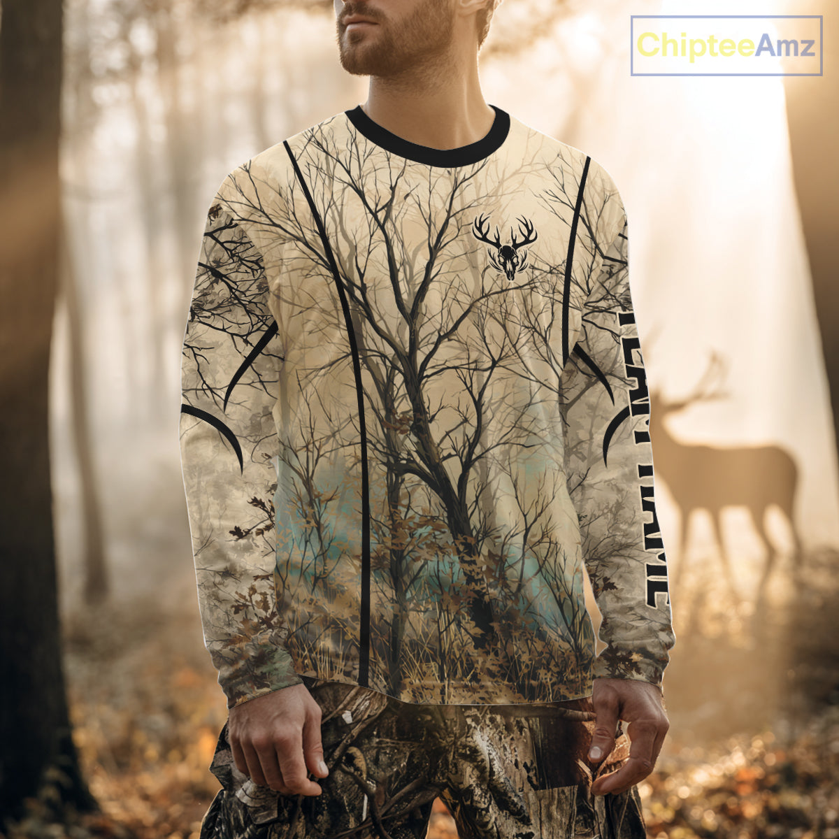 Personalized Deer Hunting Hoodie/ Long sleeves Shirts. Designed for deer hunters and outdoor enthusiasts, this shirt blends style, comfort, and funtionality in one. The unique hunting-inspired design can be personalized with your name, along with details like the American flag, camouflage patterns, and more - making it the perfect gift ideas for hunters during deer hunting season.