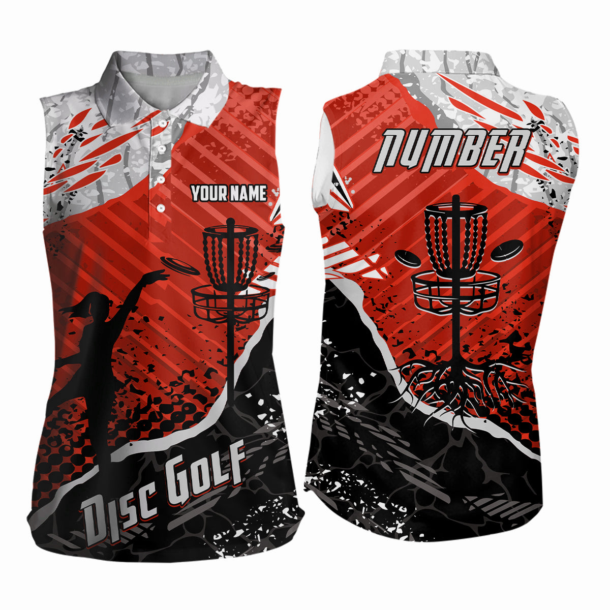 Disc Golf Abstract Grunge Womens Disc Golf Sleeveless Polo Shirt Custom Name And Number Disc Golf Gifts For Men YYD0037