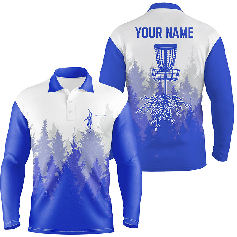 Disc golf hole in the woods Men polo shirts custom name disc golf polo shirts for men | Blue NQS4800