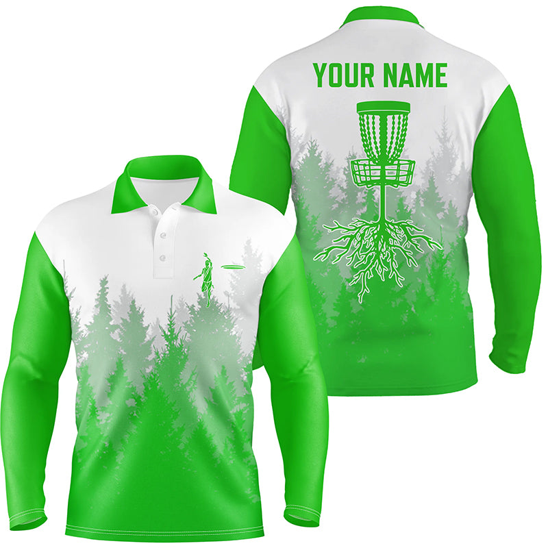 Disc golf hole in the woods Men polo shirts custom name disc golf polo shirts for men | Green NQS4801