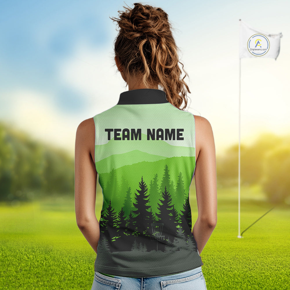 Green pattern forest Womens sleeveless polo shirt Custom team disc golf jerseys for ladies NQS10027
