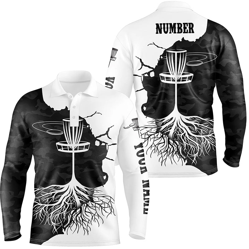 Black Camo Mens Disc Golf Polo Shirt Custom Black White Disc Golf Shirts For Men Disc Golf Gifts LDT1035