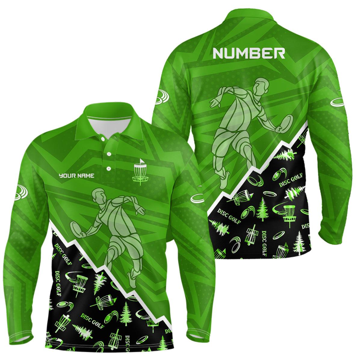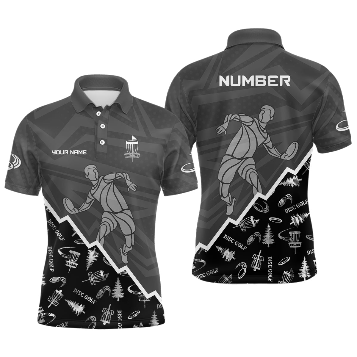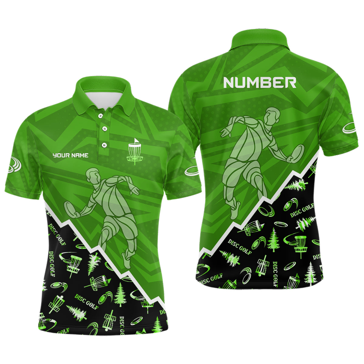 Pattern Color Mens Disc Golf Polo Shirt Custom Name & Number | Blue, Green, Grey YYD0045
