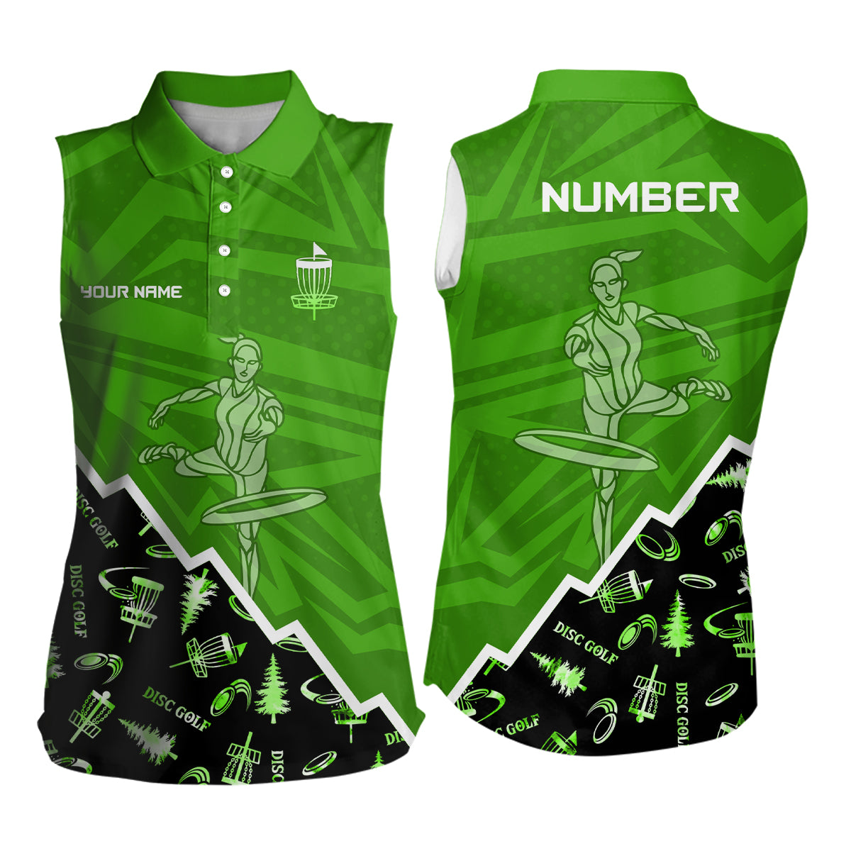Pattern Color Womens Disc Golf Sleeveless Polo Shirt Custom Name & Number | Blue, Green, Grey YYD0045