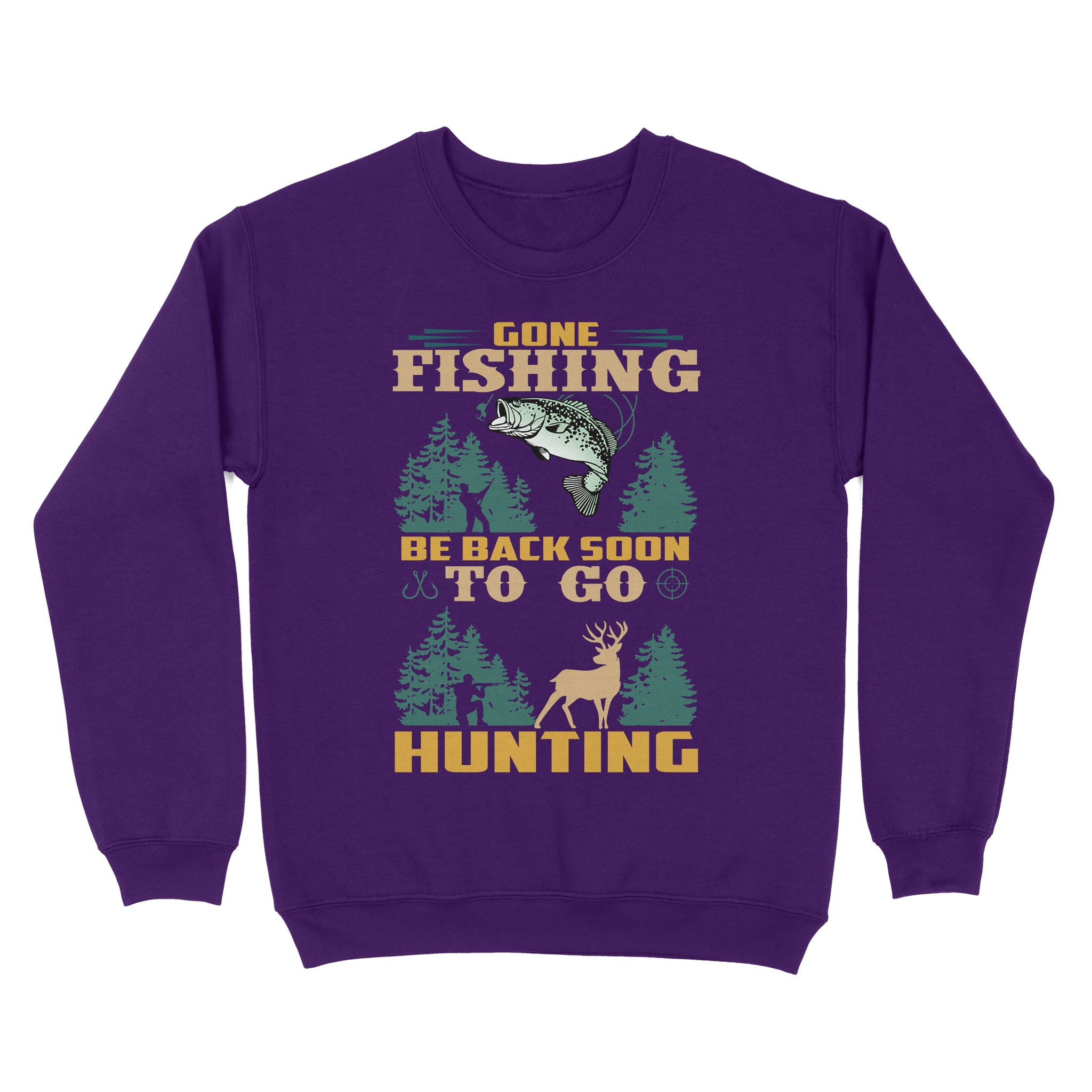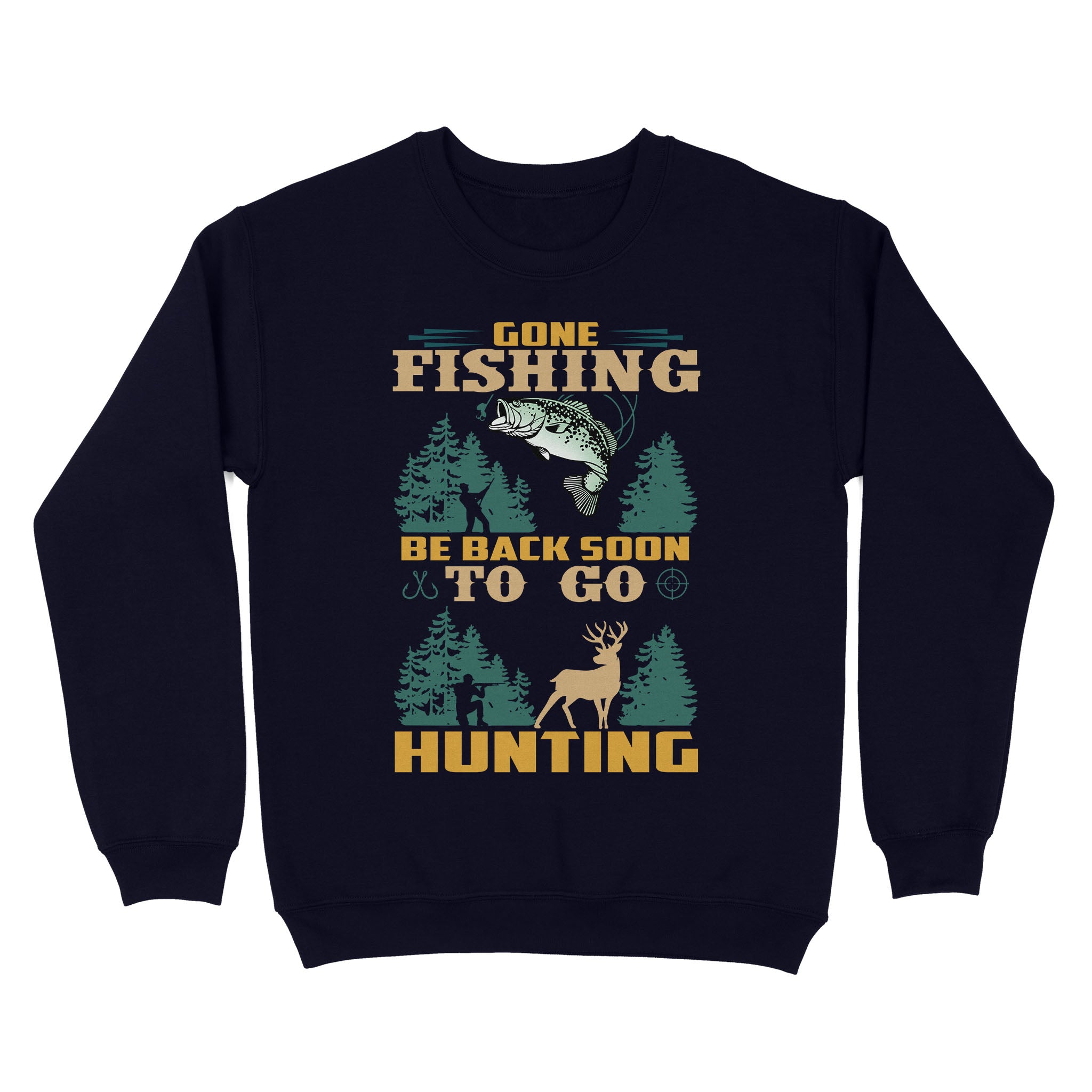 Gone fishing be back soon to go hunting, funny hunting fishing shirts D02 NQS2550 Standard Crew Neck Sweatshirt
