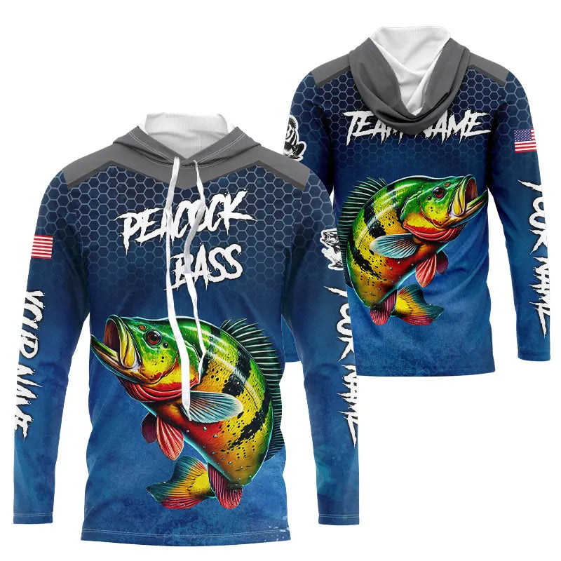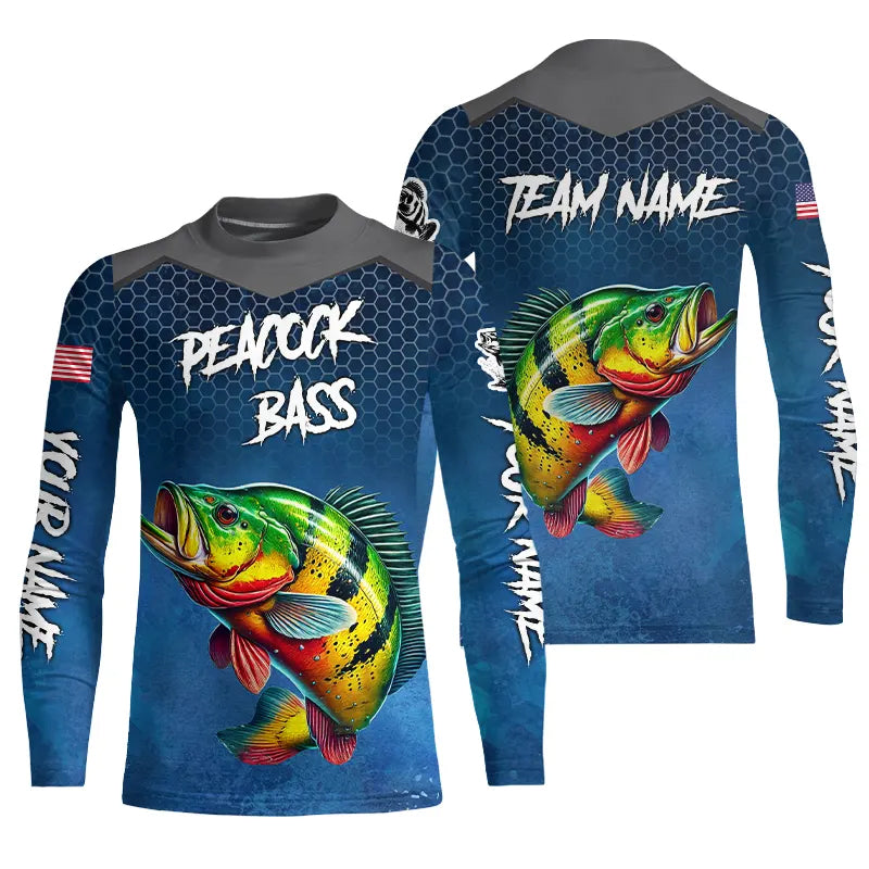 Blue camo Peacock Bass fishing Custom performance long sleeve team Bass fishing tournament shirts NQS9240