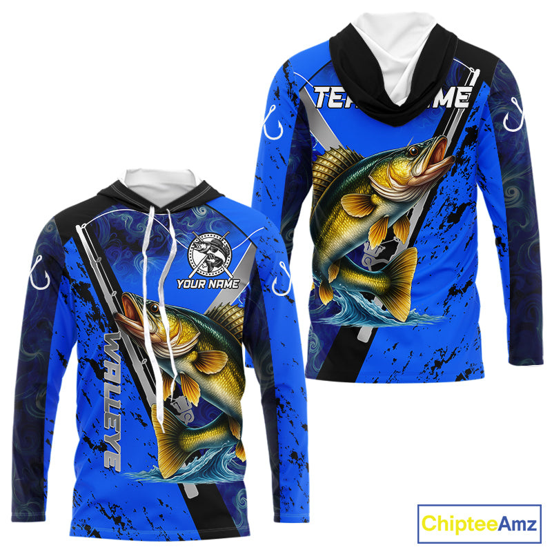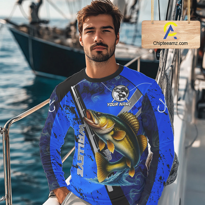 Blue Camo Walleye fishing custom Walleye sun protection long sleeve fishing shirts for Team NQS10817