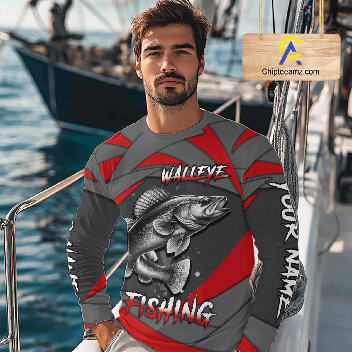 Gray and Red Walleye Fishing Jersey Custom Walleye Fishing Shirt for Team, personalized fishing gifts NQS10899