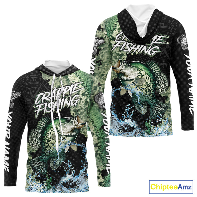 Personalized Crappie Fishing green scales compass fishing shirts Custom tournament fishing jerseys NQS11154