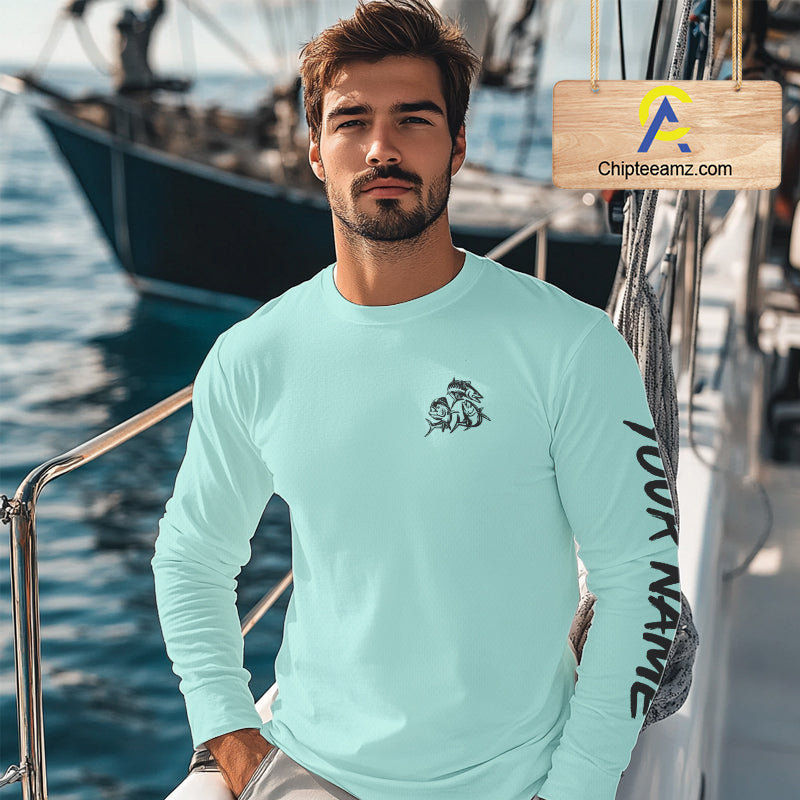 Personalized offshore Fishing jerseys, Mahi mahi, Wahoo, Tuna tournament fishing shirts | Light Green NQS11219