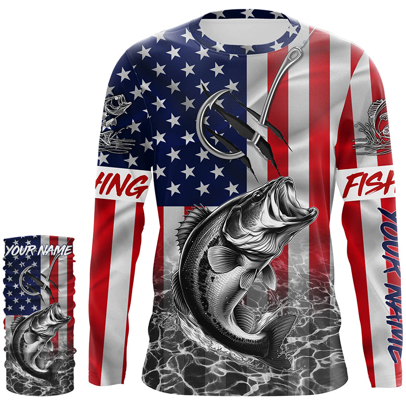 American Flag Bass Fish hook Custom long sleeve performance Fishing Shirts, Bass Fishing jerseys NQS5502
