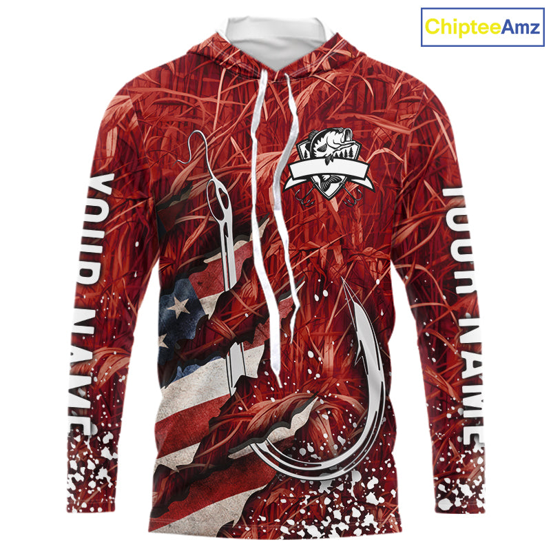 American flag fish hook red camo fishing custom sun protection performance long sleeve fishing shirt NQS10012