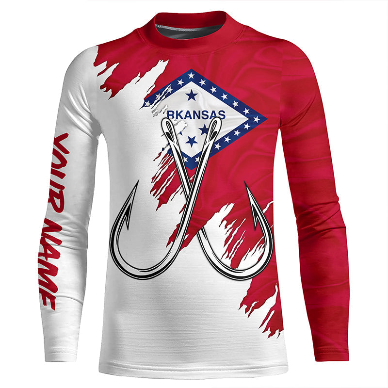 Arkansas flag AR Fishing Fish Hook UV protection custom long sleeve Patriotic fishing apparel NQS8266